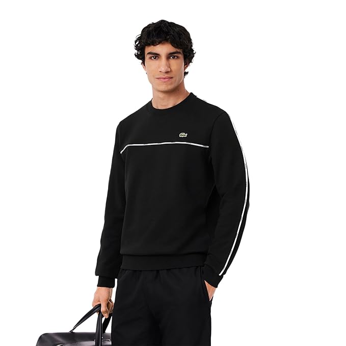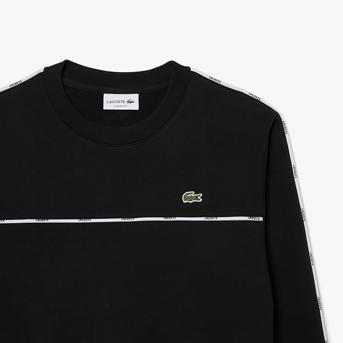 This sweatshirt from Lacoste, sportswear creators since 1933, is a lesson in expert design and bold signature styling. Made from comfortable cotton fleece with contrasting logo trim across the bust and sleeves for a signature style. A blend of fashion and sportswear, finished with an embroidered crocodile.